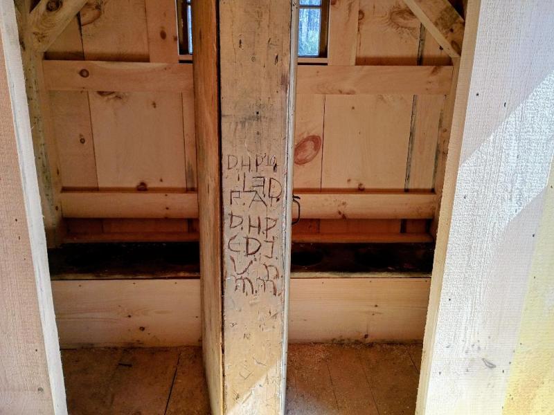 Jonathan Hotchkiss said that a slab of wood where students from the 1800s had carved their initials, and the outhouse's original toilet holes were also preserved.