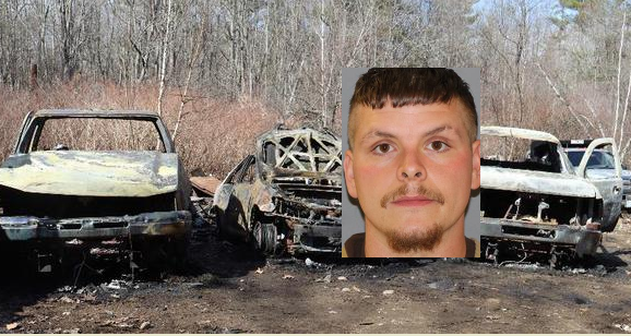 The incident unfolded on April 6 when the Lebanon Fire Department was dispatched around 2 p.m. to a wooded lot at 158 Upper Barley Road where they found four vehicles that had been destroyed by fire.