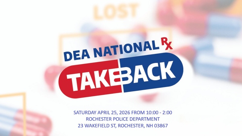 During this time residents may bring their medications for disposal to the Rochester Police Department, located at 23 Wakefield St., in Rochester. Please note that collection sites cannot accept liquids, needles, or sharps. only pills or patches. This service is free and anonymous, with no questions asked.