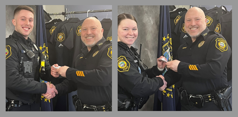 Officers Noah McCann and Officer Tiana Adams completed final leg of their journey to active duty following a stint at the NH Police Academy and Rochester Police Department in-house training.